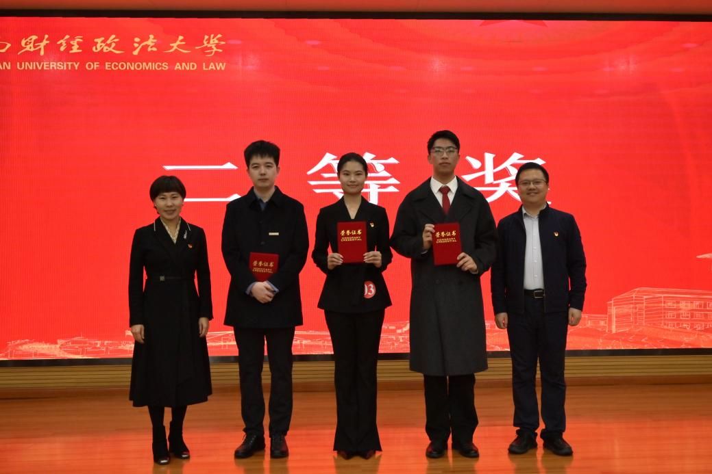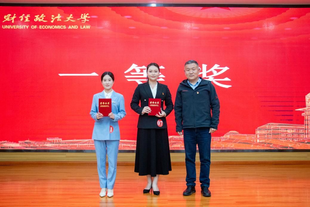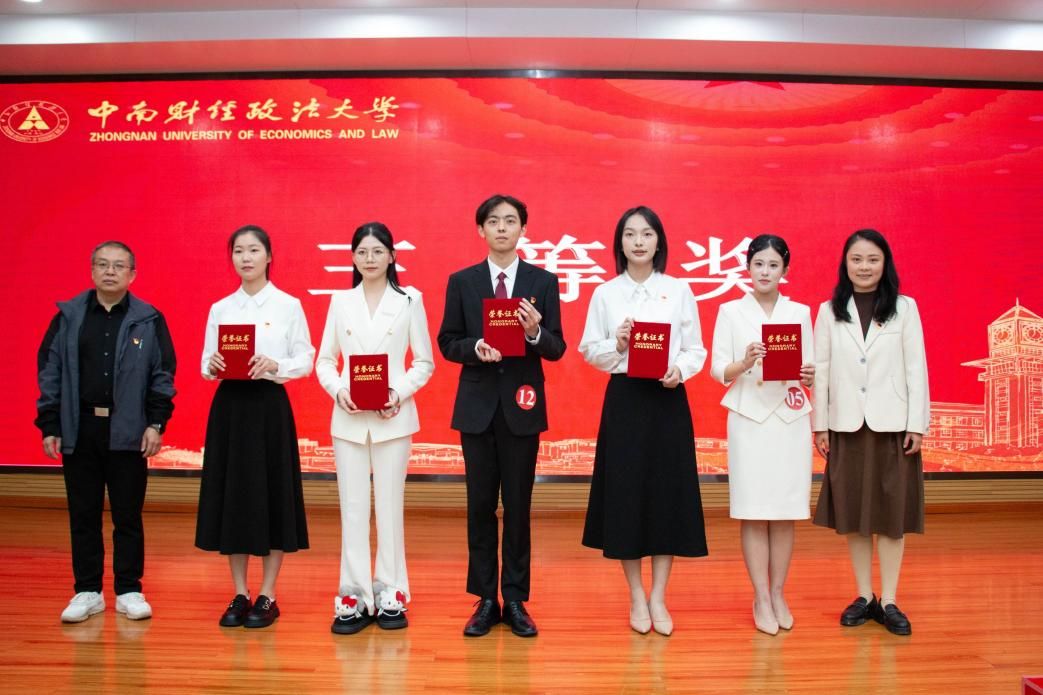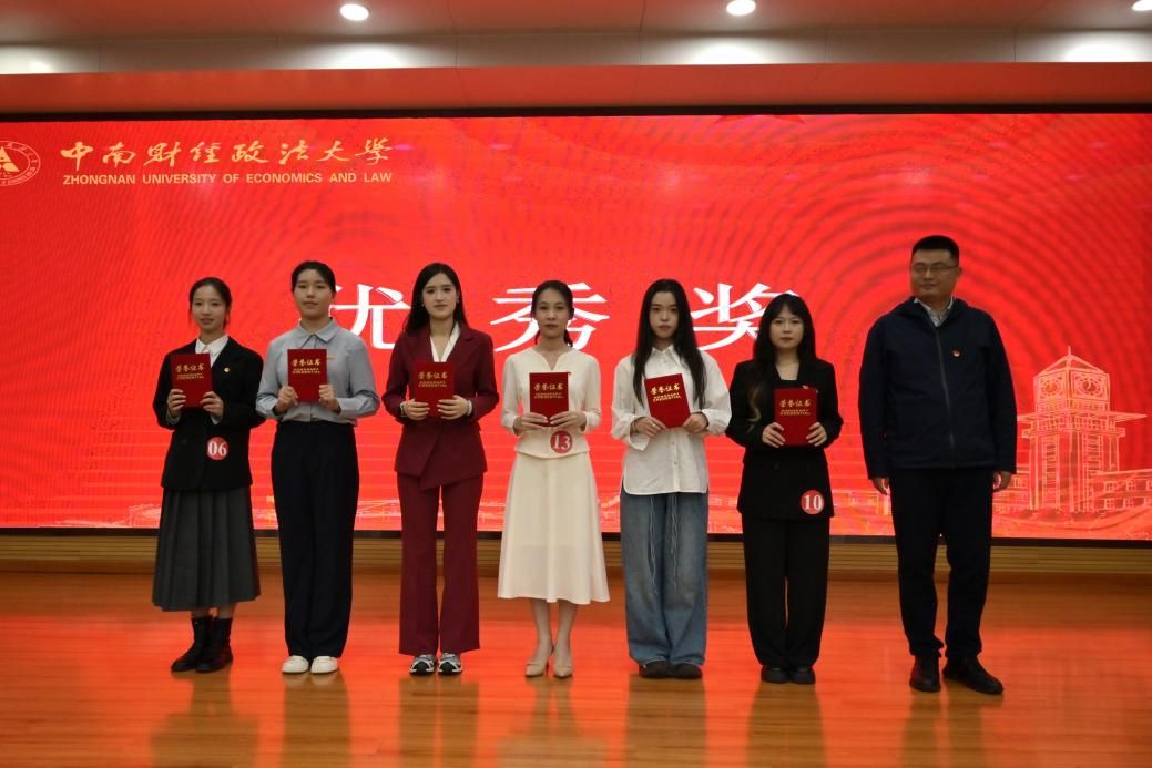经过激烈角逐,来自马克思主义学院的张梦冉和经济学院的李竞择荣获一等奖;法学院黎诗琪等3名同学荣获二等奖;知识产院学院刘璟仪等5名同学荣获三等奖;信息工程学院董玉等6名同学荣获优秀奖。评委老师为获奖选手颁奖。16位选手还正式受聘为研究生宣讲团成员。