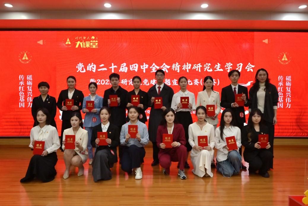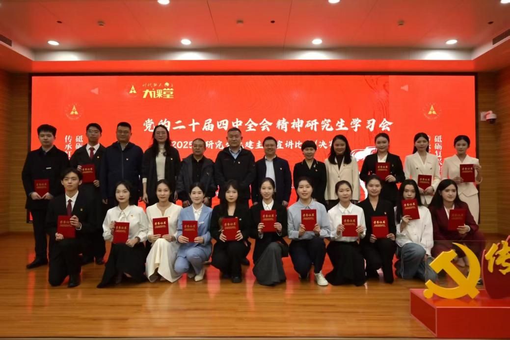 (通讯员陈梦娟 摄影冯佳琪吴嘉)为深入学习贯彻党的二十届四中全会精神,体现“发展具有强大思想引领力、精神凝聚力、价值感召力、国际影响力的新时代中国特色社会主义文化”部署要求,激励广大研究生从党的奋斗历程中汲取历史主动精神,在中国式现代化建设新征程中挺膺担当,10月30日下午,由党委研究生工作部主办,校研究生会、研究生宣讲团承办的研究生党史故事宣讲比赛决赛于文澴楼同声传译会议室成功举办。党委研究生工作部部长张文剑、党委组织部副部长屈代洲、党委宣传部副部长朱诚蕾、党委研究生工作部副部长李芳、机关党委副书记刘进明、团委副书记林晶晶、马克思主义学院副院长付佳迪受邀担任评委。