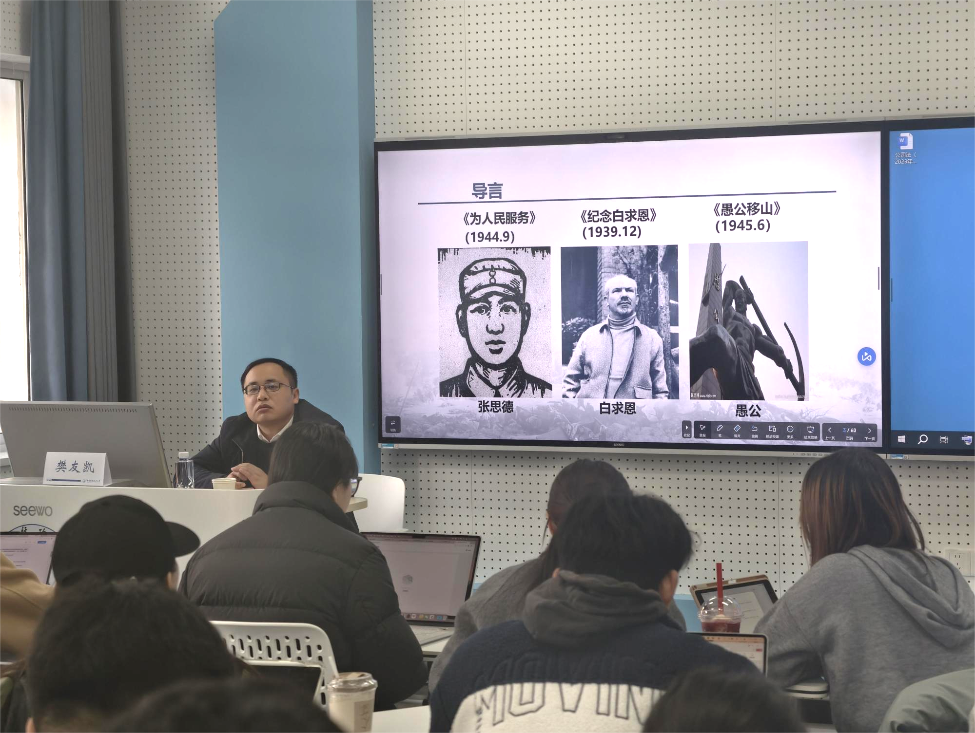 讲座伊始,樊友凯老师结合历史史料,深入剖析了《为人民服务》《纪念白求恩》《愚公移山》三篇文章的写作背景。他指出,毛泽东同志撰写“老三篇”不仅是为了纪念革命战士、宣传党的七大精神,更是为了加强党的思想建设,解决当时党内存在的思想入党不彻底、党群关系紧张以及革命动力不足等问题,从根本上改造旧的道德伦理,确立适应革命需要的新道德。樊老师还引用了习近平总书记关于学习张思德、白求恩、焦裕禄、麦贤得等楷模以及弘扬愚公移山精神的重要论述,强调了新时代重温“老三篇”的重要现实意义。