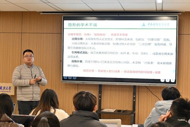 本次宣讲活动不仅增强了研究生对学术诚信的认识,也引导大家将个人科研追求与国家发展需求相结合,践行“博文明理、厚德济世”的校训精神,为培养高素质、负责任的新时代科研人才奠定了坚实基础。
