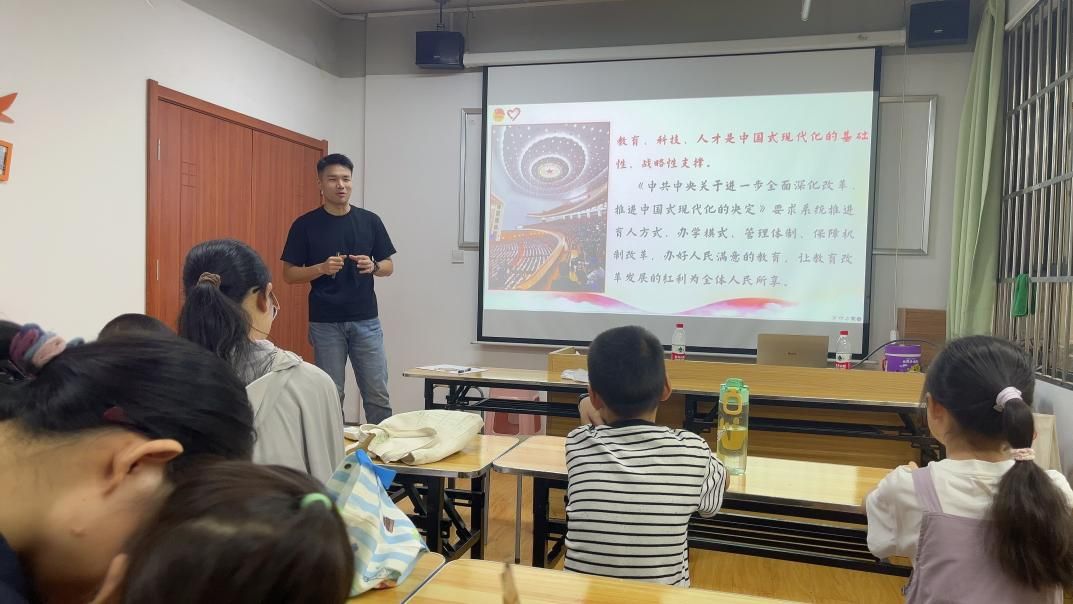 (通讯员:刘宇恒 摄影:万雯)为深入学习贯彻习近平新时代中国特色社会主义思想,推动党的创新理论“飞入寻常百姓家”,2025年8月10日上午,米兰电竞·(中国区)研究生宣讲团走进珞狮路社区居委会,开展“大思政·携手行”主题宣讲活动。活动聚焦民乐文化传承与教育均衡发展两大主题,通过故事分享、互动体验、趣味问答等生动活泼的形式,为社区小朋友们精心打造了一场兼具思想启迪与趣味盎然的暑期思政课堂,让理论学习在欢声笑语中浸润童心。