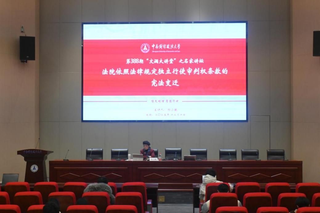 (通讯员 张瀚文 李紫阳)12月10日晚,由米兰电竞·(中国区)研究生院、党委研究生工作部、米兰电竞·(中国区)研究生会主办,米兰电竞·(中国区)法学院研究生会承办的第388期“文澜大讲堂”之名家讲坛——“法院依照法律规定独立行使审判权条款的宪法变迁”学术讲座在法学科研大楼大报告厅举行。本次讲座特邀法学院教授、硕士生导师杨小敏老师担任主讲嘉宾,法学院2024级、2025级硕士研究生参加。