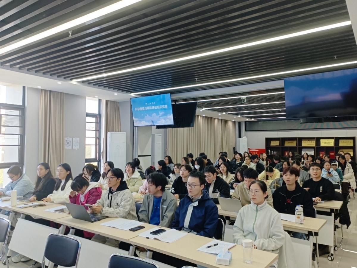 在科学道德与学风建设知识竞答环节中,同学们积极回答问题,该环节既检验了同学们的学术道德知识掌握程度,也激发了同学们参与活动的热情,实现了以赛促学。