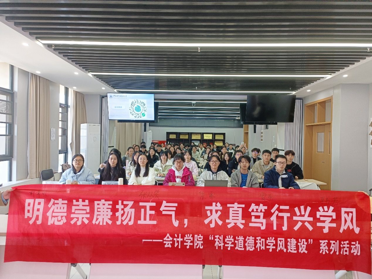 未来,会计学院将持续以常态化、多样化的形式深入开展科学道德和学风建设工作,引导研究生遵守学术规范、坚守学术诚信、完善学术人格、维护学术尊严,摒弃学术不端行为,努力成为优良学术道德的践行者和良好学术风气的维护者。