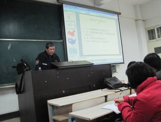讲座开始前,胡江滨书记首先简要介绍了一下朱延福教授的学术和研究成果,随后朱教授开始了其引人入胜的讲授。朱教授首先向大家介绍了后危机时代中美关系的经济背景,指出2008年开始的经济危机的特征及世界经济复苏的契机。其次朱教授主要讲述了中国和美国之间的经济关系和政治关系,指出中美关系的要害在于经济的互补性和政治对抗性的矛盾。而后朱教授重点讲授了后危机时代中美经济的合作和竞争,他指出中美两方在危机、全球治理方面存在较大的合作空间,但中美之间的竞争也在加剧,主要表现在贸易战、货币战、资源战、人才战等方面,并阐述了中国在应对这些挑战方面的措施。