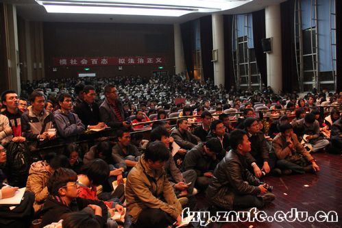 老师幽默风趣的语言和贴近实际的举例赢得了同学们的一致好评。讲座结束后,还有许多同学纷纷上台索要苏力教授的亲笔签名,并合影留念。