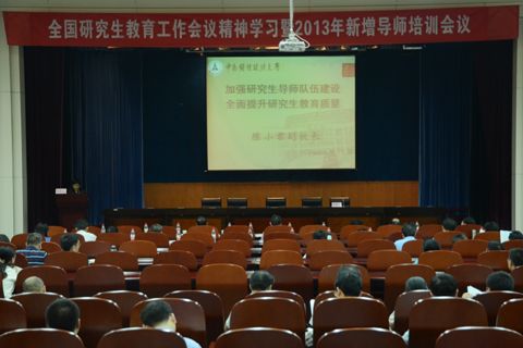 (通讯员:石龙、刘龙艳)为贯彻落实全国研究生教育工作会议精神、推动研究生教育工作走上不断提升质量的良性轨道,我校于10月10日下午在文泉楼报告厅举行全国研究生教育工作会议精神学习暨2013年新增导师培训会议。副校长陈小君、人才与师资工作办公室、研究生院、党委研究生工作部负责人,各研究生培养单位分管研究生教育工作的负责人、各导师组负责人、2012-2013学年新增导师、各学院研究生工作办公室工作人员和研究生院、党委研究生工作部各科室负责人等近200人参加了会议,会议由研究生院常务副院长唐国平教授主持。