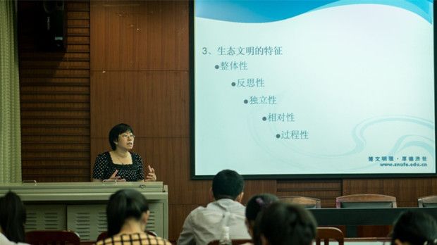 高教授首先从农业文明、工业文明和生态文明不同的文明形态中经济发展的模式的不同特点开始,为大家讲解不同阶段的文明形态及其经济的发展趋势和特点,引出后工业文明中发展生态文明的必然性。随后从生态文明的内涵界定、特征等方面指出生态文明是一种不同于工业文明的发展模式,并进一步诠释了生态文明与社会主义的内在关联,分析了建设生态文明的构想和实践为什么没有发生在发达国家,而发生在中国?中国特色的社会主义生态文明建设道路和模式应当是什么呢?如何推进具有中国特色的社会主义生态文明建设?最后,高教授在创建生态文明的经济发展模式上介绍了自己的观念和构想。中国特色的社会主义生态文明建设需要分阶段逐步推进,从全面建成小康社会到绿色城镇化,最终到2050年基本实现中等发达国家现代化。