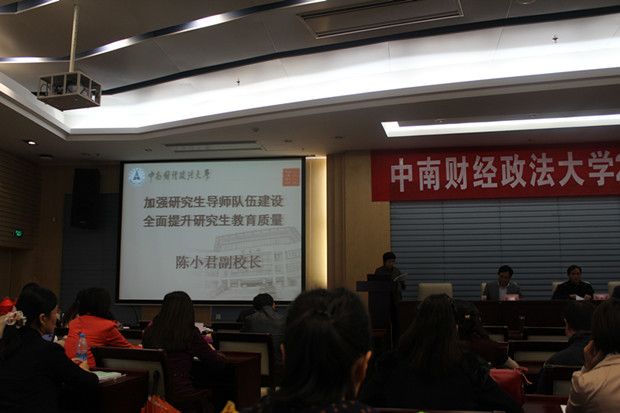 会上,陈校长向参会人员介绍了我国研究生教育定位与发展的情况,讲解我校研究生教育取得的成绩与面临的挑战和问题,并阐述未来几年全面提升我校研究生教育质量的主要措施。她强调导师作为研究生成长成才的引路人和指导者,是研究生教育队伍中不可替代的重要力量,因此加强导师队伍的建设和管理对于提高研究生质量有着极为重要的意义。最后,她要求导师不断增强身份意识,履行好职责,做研究生健康成长的优秀指导者,优良学风的积极倡导者,质量立教的忠实实践者,学术创新的大胆开拓者,学校事业发展的有力推动者和社会文明新风的时代引领者。