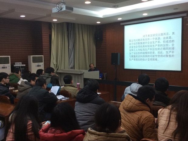 本次活动成功的邀请到了经济学院副院长罗良文教授,并为此次活动做了一个内容丰富并且反响不同的开场。并且成功的吸引了全院90多个博士和硕士生前来听讲,可谓规模空前,场面宏大的一次讲座。