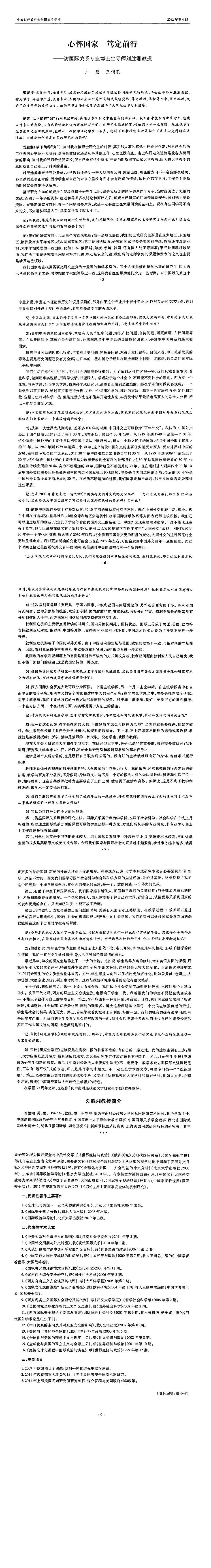 心怀国家笃定前行_访国际关系专业博士生导师刘胜湘教授