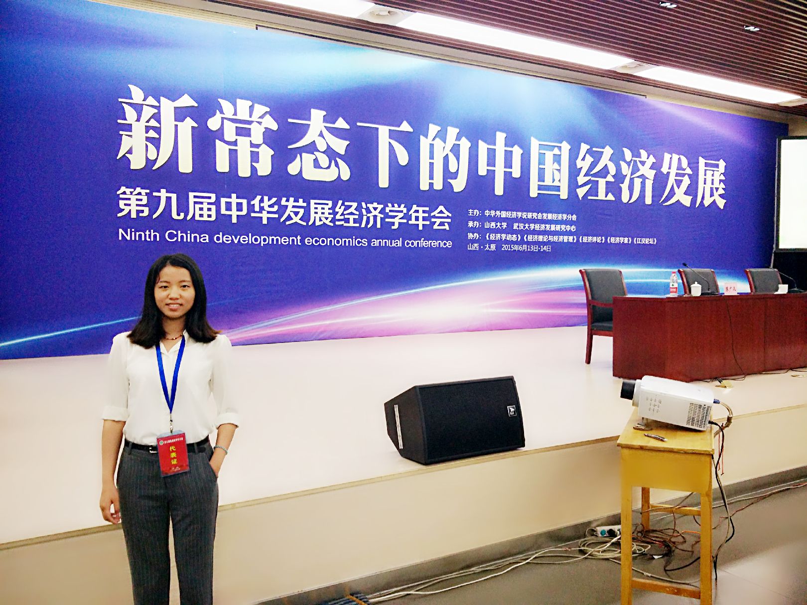 张燕生谈了中国构建开放型经济体系的机遇和前景,认为要把握发展实体经济的坚实基础,把握扩大内需这个战略支点,把握“一带一路”蕴含的巨大机遇。杨春学探讨了中国防滑入中等收入陷阱的关节点问题,认为保持某种增长率并不能防止“中等收入陷阱”,而应该进行农业改革、户籍改革和增加就业的灵活性。山西大学副校长杨军教授对经济新常态下陕西发展出路选择进行了发言,认为当务之急是提高资本报酬率,确保资本积累率不下滑。还有很多优秀学者进行了演讲。我校经济学院研究生李静在分会场上汇报了自己参会论文的框架和思路,与学者交流。该生表示参加此次会议对于自己了解我国新常态下中国经济发展的机遇和挑战,如何实现经济转型、城镇建设具有重大意义。本次参会受到了我校“研究生创新教育计划”项目的专项资助。