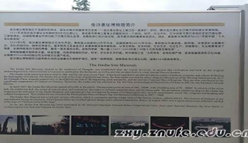 我们分别从遗址馆、陈列馆、文化景观三个不同的侧面对金沙遗址博物馆进行了参观与认识。本次课题以金沙遗址的开发保护和城市发展建设的关系为调研对象,对于保护和弘扬我国传统文化有一定的积极意义。