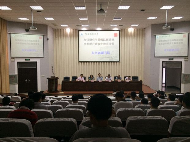 齐文远副书记首先代表学校向各位导师在过去一年的工作中付出的心血和汗水表示衷心的感谢,并对新增导师的加入表示热烈的祝贺。在回顾我校研究生教育近年进行的探索和取得的成绩后,他以“师道之尊,在立身垂范”、“师道之业,在严与宽”和 “师道之盛,唯新与实”为主题对导师工作岗位的要求进行了解读,提出了明晰职责义务、做到真督实导等要求。最后,他衷心希望新增导师能够不断增强身份意识,关注国家在研究生教育方面的政策和方针,努力培养更多高层次专门人才和杰出创新性人才,促进学校和研究生教育的可持续发展,为服务经济建设社会做出更大贡献。