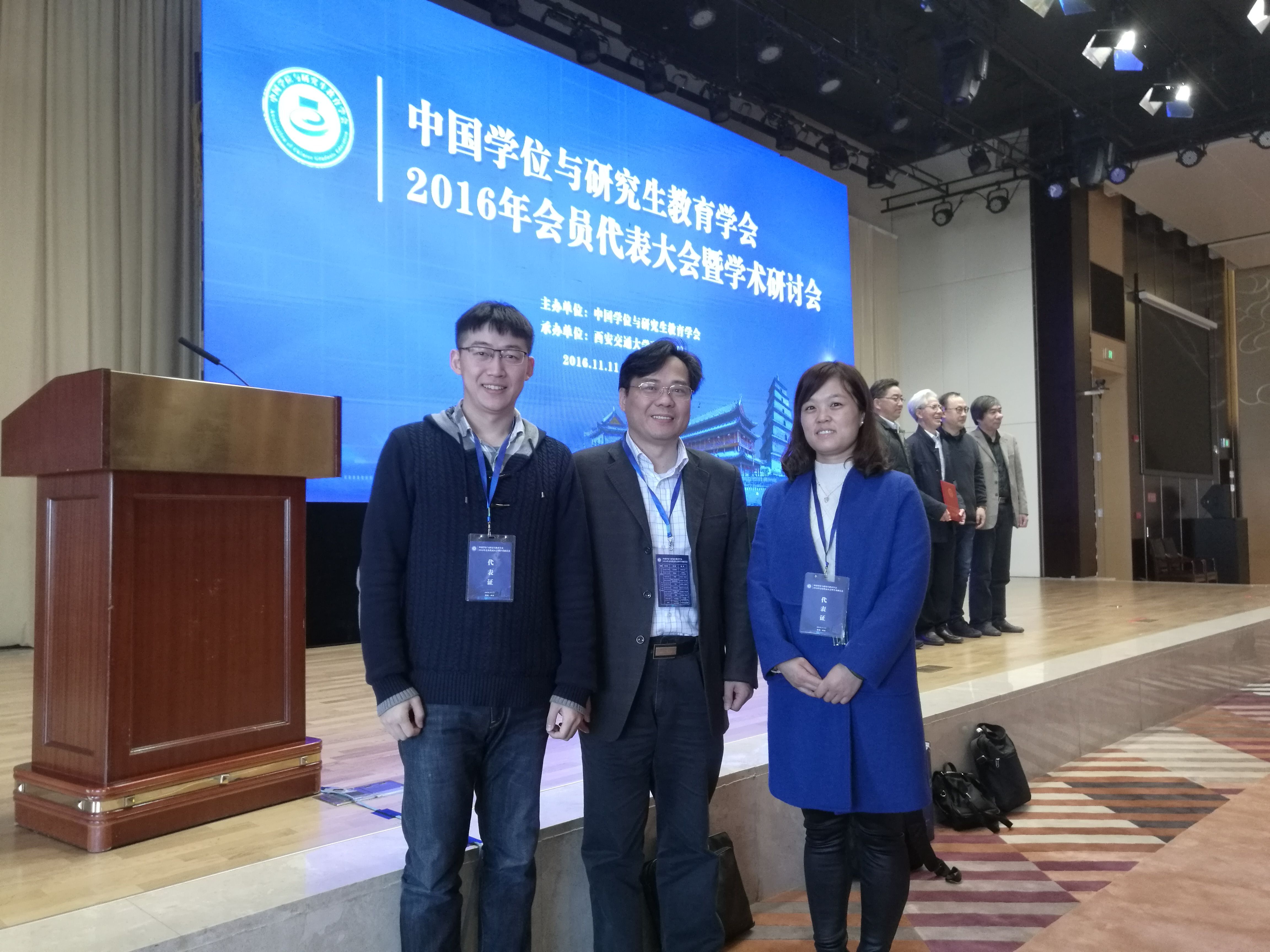 (通讯员雷霆)11月10日—10月11日中国学位与研究生教育学会2016年会员代表大会暨“改革创新 特色发展 建设研究生教育强国”学术研讨会在西安召开,我校研究生院副院长张德淼教授、研究生院学位办雷霆老师作为理事单位代表,研究生院培养与督导办公室卫瑾老师作为个人会员代表应邀参会。