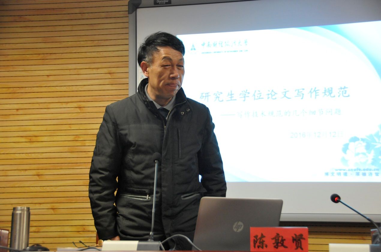 (通讯员 王宝卓 方亚丽 摄影 杨健)为了规范研究生的论文写作标准,提升论文写作质量,马克思主义学院于2016年12月12日晚在文沛楼409成功举办了“研究生学术论文写作规范”主题讲座。此次讲座邀请到了《米兰电竞·(中国区)学报》常务副主编兼编审陈敦贤,讲座由学院院长龚先庆教授主持。学院部分老师、2016级博士生、2015级和2016级硕士研究生参加了此次讲座。