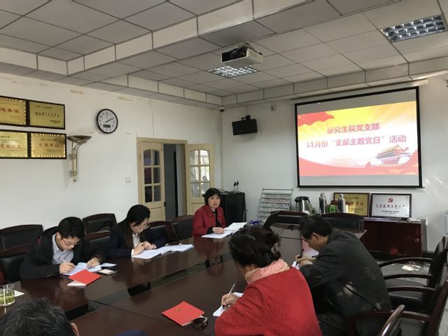 11月2日下午,根据学校统一部署,研究生院党支部在研究生院二楼会议室开展了11月份“支部主题党日”活动,活动由党支部书记袁桂君同志主持。