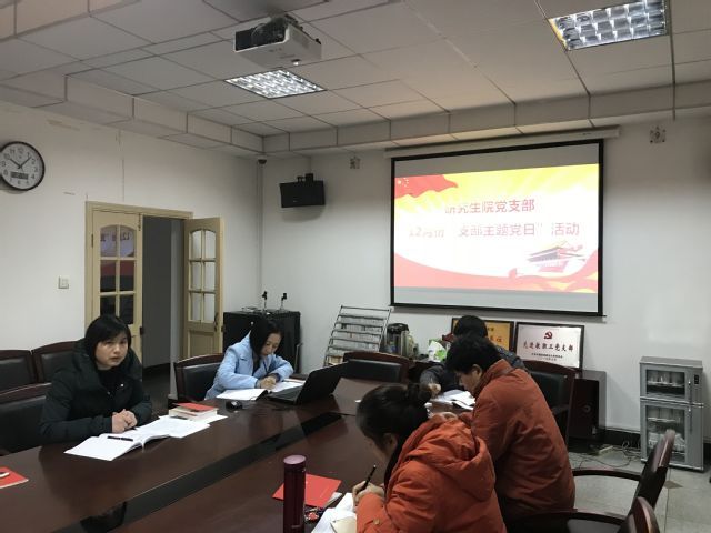 12月7日上午,根据学校统一部署,研究生院党支部在研究生院二楼会议室开展了12月份“支部主题党日”活动,活动由党支部书记袁桂君同志主持。