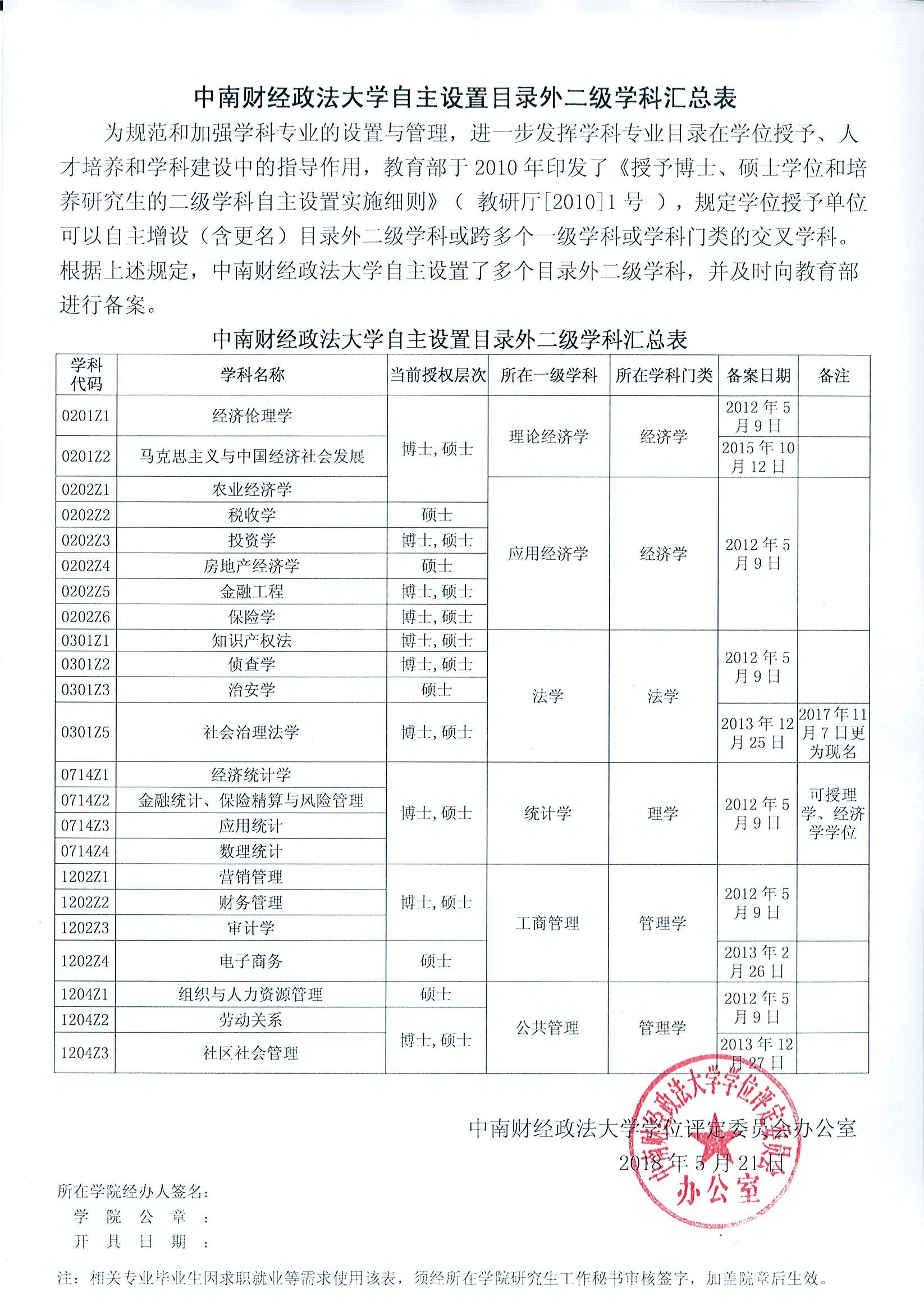 | 0301Z5 | 社会治理法学 | 博士,硕士 | 2013年12月25日 | 2017年11月7日更为现名 | ||