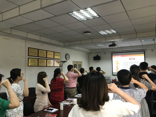 最后,大家集体诵读了《中国共产党章程》第一章内容,并重温了入党誓词,现场缴纳了八、九月份的党费。