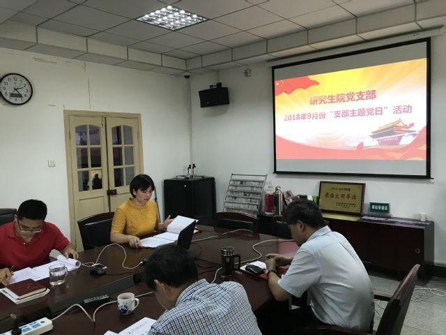 9月13日下午,根据学校的统一安排,研究生院党支部在研究生院二楼会议室开展了9月份“支部主题党日”活动,组织开展以“弘扬爱国奋斗精神、建功立业新时代”为主题的专题学习和大讨论。本次“支部主题党日”活动由党支部第一党小组承办,第一党小组长王广波同志主持。