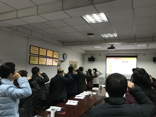 最后,大家集体诵读了《中国共产党章程》第二章内容,并重温了入党誓词,全体党员现场缴纳了12月份党费,袁桂君同志向支部全体党员通报了机关党委2017年党费和本支部的党建经费使用情况。