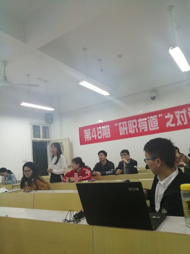 在此次活动中,谢宏师兄还邀请了我校研二在读的罗鸣同学向同学们分享其学习经验与实习经历,罗鸣同学本科为中南民族大学,现为我校金融学院研究生。由于罗鸣师兄与大家所处的阶段更加相似,很多同学认为其讲述的实习经历为其提供了许多可借鉴之处,例如如何找实习工作,如何做到生活与学习兼顾等,使同学们受益匪浅,活动结束后很多同学都与罗鸣同学进行了沟通交流。