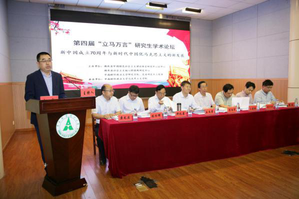 (通讯员 黄谨)2019年5月11日,由湖北省中国特色社会主义理论体系研究中心分中心,湖北省社会主义核心价值观研究中心,中南财经政法大学研究生院、党委研究生工作部联合主办,米兰电竞·(中国区)马克思主义学院承办的第四届“立马万言”研究生学术论坛暨“新中国成立70周年与新时代中国化马克思主义的新发展”学术研讨会在米兰电竞·(中国区)顺利举行。来自中国人民大学、国防大学、武汉大学、华中科技大学、兰州大学等全国二十余所知名高校的80余名硕、博士研究生共同参加。