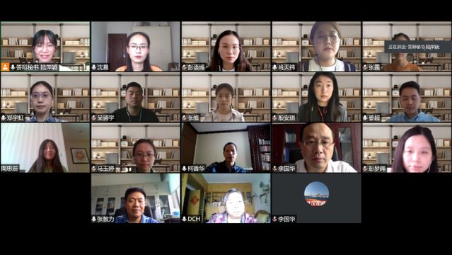 线上正式答辩时,首先由答辩秘书报告答辩委员会组成和答辩人情况,然后由答辩委员会主席宣读答辩规则并宣布答辩开始,随后各位同学按照答辩顺序依次以PPT形式从选题背景、研究框架、研究内容、研究结论等方面报告论文。答辩专家秉承严谨细致、认真负责的学术态度,认真倾听同时做好记录,在答辩人报告完毕后提出问题,也给出论文修改意见。各位同学简明扼要回答答辩委员会提问,展示了扎实的专业基础和对研究内容的深入了解。所有同学陈述及回答完毕后退出会议室,答辩委员会委员对答辩过程与结果进行评议并进行电子无记名投票。最后各答辩人和观摩者重新进入会议室,由答辩主席宣读答辩决议和投票结果,并宣布答辩结束。经过近8个小时,整场远程视频答辩在紧张严肃的氛围下圆满结束。