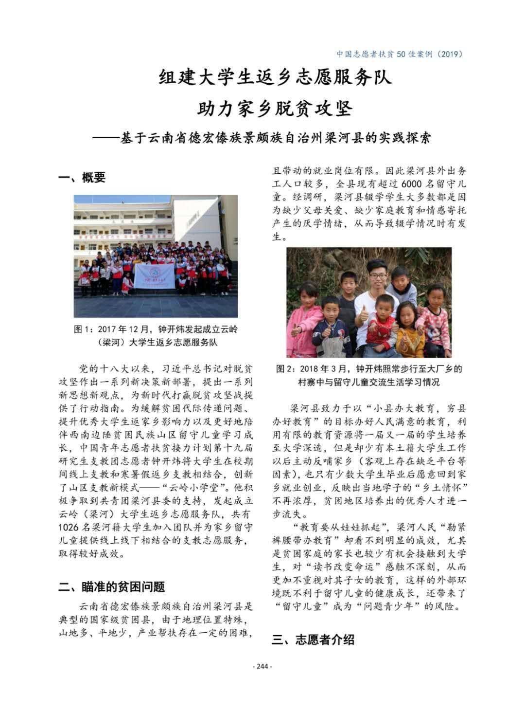 钟开炜同学是我校第四次党代会研究生党员代表,本硕均就读于我校公共管理学院行政管理专业。他从本科开始利用休息时间在乡镇兼职锻炼,参与基层精准扶贫工作,是我校在志愿服务和脱贫攻坚领域中的一名优秀学生党员代表,并多次在国家及省市平台中为校争光。2017年,钟开炜同学本科毕业,在学校的支持和鼓励下,他作为西部计划研究生支教团志愿者到云南梁河进行了为期一年的支教。在西南边陲,他在取得当地政府支持下,主动结合自己的专业所学,成立了云岭(梁河)大学生返乡志愿服务队。至今,云岭大学生返乡志愿服务队已有一千多名梁河籍在校大学生为家乡的脱贫攻坚事业助力,成效显著。2019年底,钟开炜同学的志愿扶贫案例入选国务院扶贫办评选的《中国志愿服务扶贫案例50佳》,是全国仅有的10位获奖者之一。钟开炜同学还曾获评“中国大学生自强之星”、“全国大学生西部计划优秀志愿者”、“中国大学生年度人物入围奖”、“湖北省新时代向上向善好青年”、“武汉市文明市民”、“洪山好人”等多项荣誉,主持及参与的项目获得国家省市级荣誉30余项。