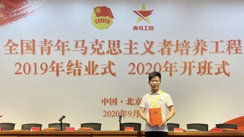 (通讯员:付慧娟)近日,全国青年马克思主义者培养工程2019年结业式、2020年开班式在中央团校举行。共青团中央书记处书记徐晓出席并讲话。中央组织部、教育部、民政部、农业农村部、国资委、中国国家铁路集团有限公司有关负责同志,学员理论导师代表,全国“青马工程”2019年和2020年学员参加开班式。我校公共管理学院2018级硕士研究生钟开炜同学作为2019年全国“青马工程”学员顺利结业,获评“优秀学员”并作为代表上台领奖,再次为学校争光!