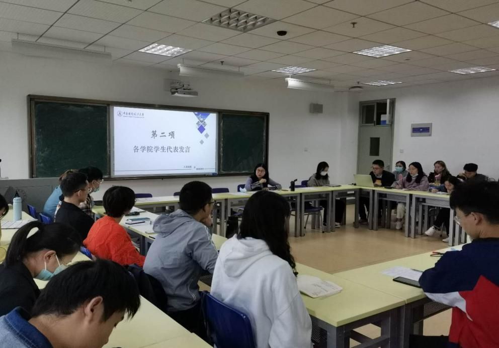 (通讯员:陈明威 杨聪)2020年10月7日下午14点,2020-2021学年第一次研究生代表座谈会暨新时代研究生教育改革精神学习会在文澴楼225教室召开。本次座谈会的主题为“新时代研究生教育改革”,旨在深入学习习近平总书记关于研究生教育重要指示精神、李克强总理批示以及全国研究生教育会议精神,明晰新时代研究生教育肩负的使命。来自各学院(中心)的32名代表参加了本次座谈会,党委研究生工作部雷磊副部长和付慧娟老师到会听取、了解研究生同学对于研究生教育改革工作的意见建议。