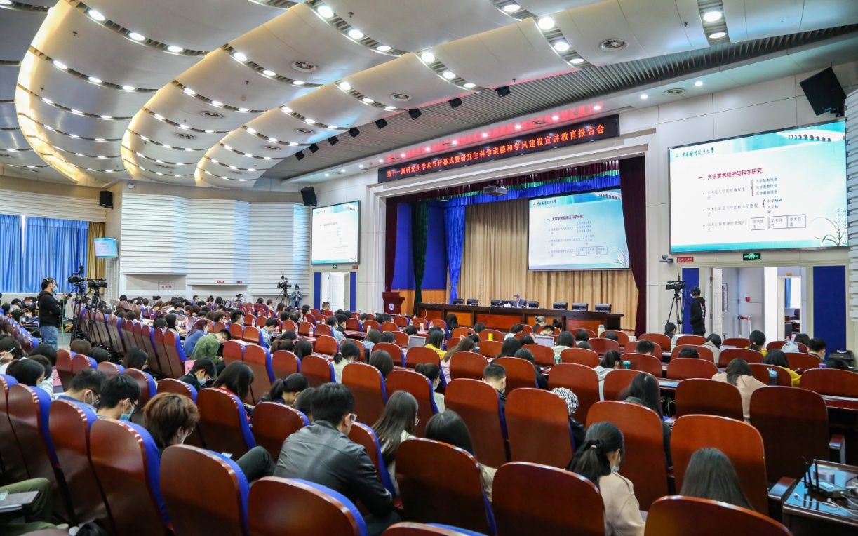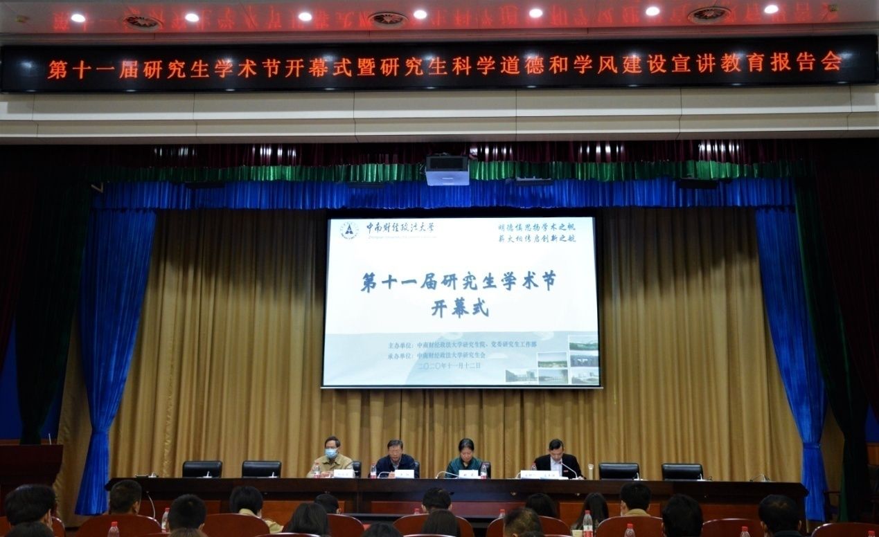 (通讯员 付慧娟 黄丽琼 徐晨 肖张薇 王婵媛)11月12日上午9时,我校第十一届研究生学术节开幕式暨研究生科学道德和学风建设宣讲教育报告会在文泉楼学术报告厅隆重举行,并同步进行线上直播。校党委常委、副校长覃红教授,校党委常委、副校长姚莉教授出席开幕式,党委宣传部、科学研究部、校团委、研究生院、党委研究生工作部负责人,全校17个研究生培养单位的党委书记、分管研究生培养的院长、副院长、研究生工作办公室老师以及华中地区兄弟高校的研究生代表和我校研究生代表参加了开幕式。开幕式由党委研究生工作部部长肖翠祥主持。