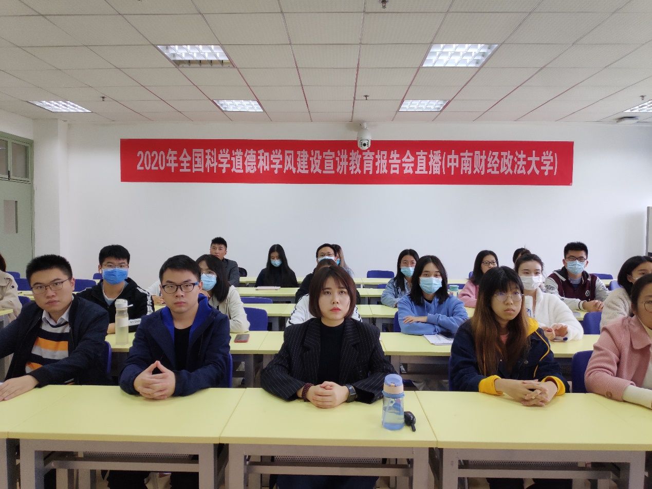 (通讯员 陈谦 赵鑫)为深入学习贯彻习近平新时代中国特色社会主义思想和党的十九届五中全会精神,弘扬科学家精神,加强作风和学风建设,深入推进科学道德和学风建设宣讲教育工作,11月20日下午14时30分,我校组织研究生代表在文澴楼525教室集中观看2020年全国科学道德和学风建设宣讲教育报告会线上直播。