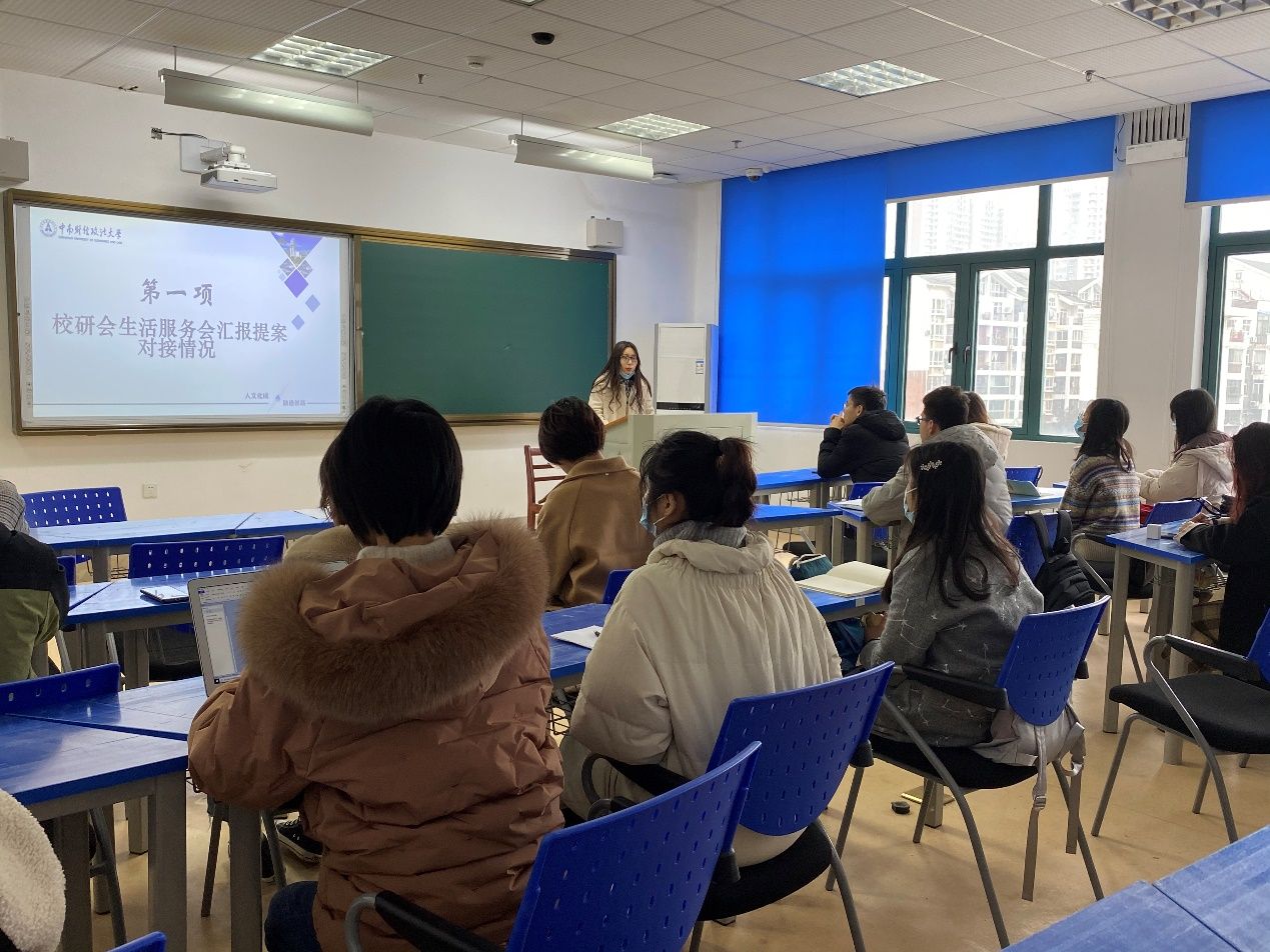 座谈会伊始,童子毅同学简要介绍了十月份与十一月份的提案收集和对接情况。随后,各学院(中心)代表依次反映在前两个月提案收集整理过程中发现的问题。大家主要反映了文澴楼防滑和照明设施设置、环湖生活区停水通知、调整热水供应时间、食堂设置微波炉、、校园网不稳定、高峰时段校车较少等事项。问题反馈结束后,校研究生会生活服务部负责人梁盼玲同学和童子毅同学对已经完成对接的问题作出解答,并表示对暂未解决的问题将持续跟进,促进问题尽快解决。