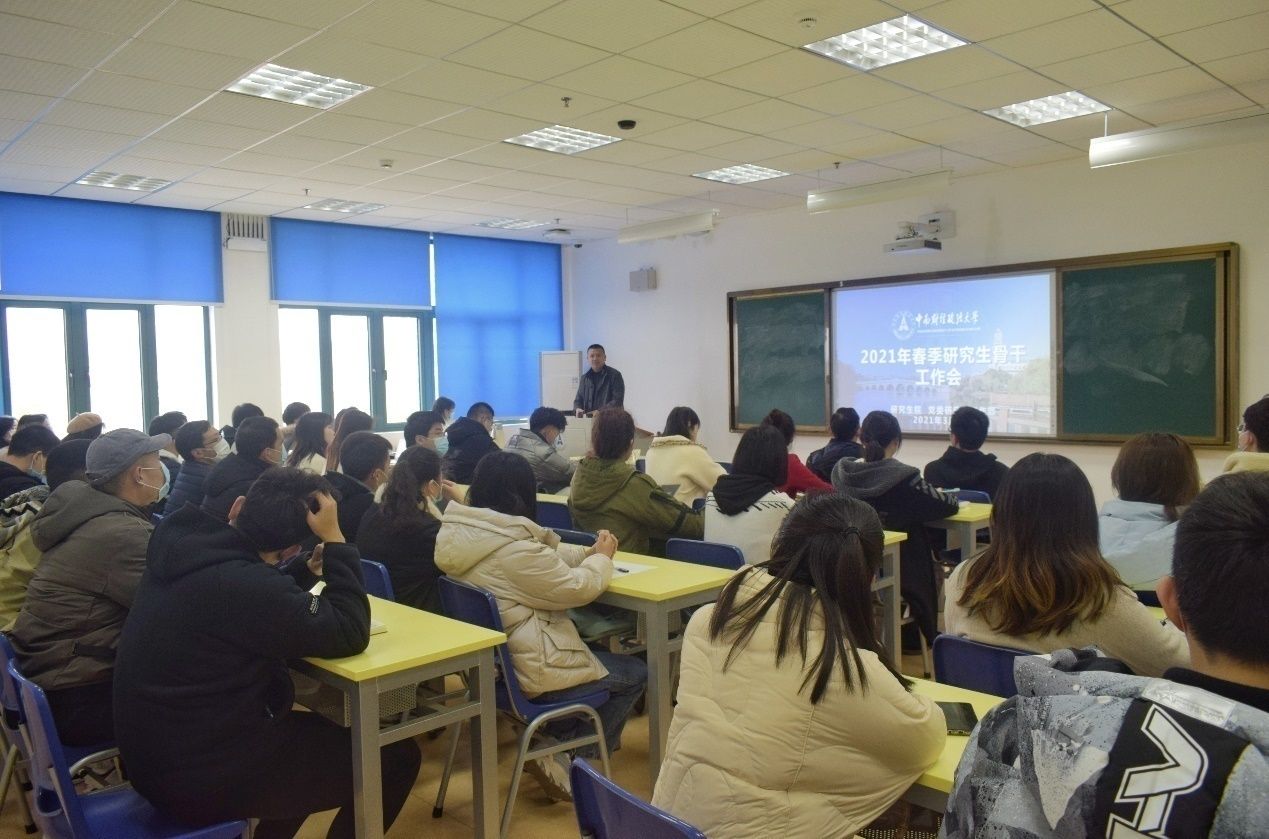 (通讯员:黄丽琼 计康凌 刘梓寒 赵鑫)2021年3月3日下午2点30分,研究生院、党委研究生工作部在文澴楼517召开了2021年春季研究生骨干工作会。党委研究生工作部部长肖翠祥、副部长雷磊,研究生院副院长魏永长出席了本次会议,参加会议的还有党委研究生工作部思政办老师,校研究生会、《研究生学报》编辑部、《中南研语》编辑部三个校级研究生组织的骨干代表和各学院(中心)研究生会主席团成员代表,会议由雷磊主持,主要内容是学习传达中共中央、国务院印发的《深化新时代教育评价改革总体方案》文件精神和学校2021年春季工作会议精神,加强党委研究生工作部对研究生组织的工作指导和交流联系,安排部署研究生组织2021年春季学期工作。