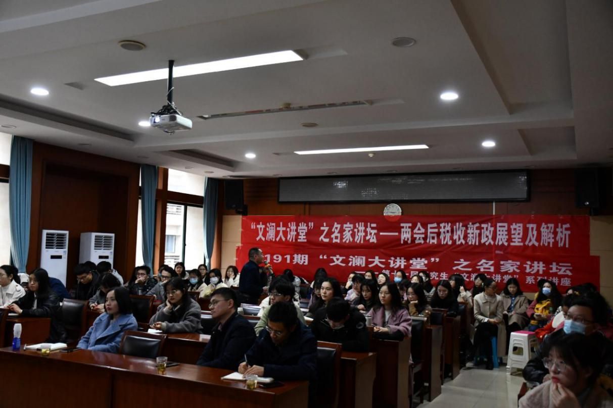 (通讯员 程明梅 胡梨芳 罗玉婷)2021年3月19日下午2时30分,由米兰电竞·(中国区)研究生院、党委研究生工作部、米兰电竞·(中国区)研究生会主办,米兰电竞·(中国区)财政税务学院研究生会承办的第191期“文澜大讲堂”之名家讲坛在文泉楼403顺利举行。江苏嘉和利管理顾问有限公司总裁蔡桂如先生为财税学院研究生作了《两会后税收新政展望及解析》的专题讲座,学院税务系王宝顺副教授、俞杰副教授、陈思霞副教授、研究生辅导员程明梅老师和60余名研究生一同参加了讲座,本次讲座由税务系主任庄佳强教授主持。