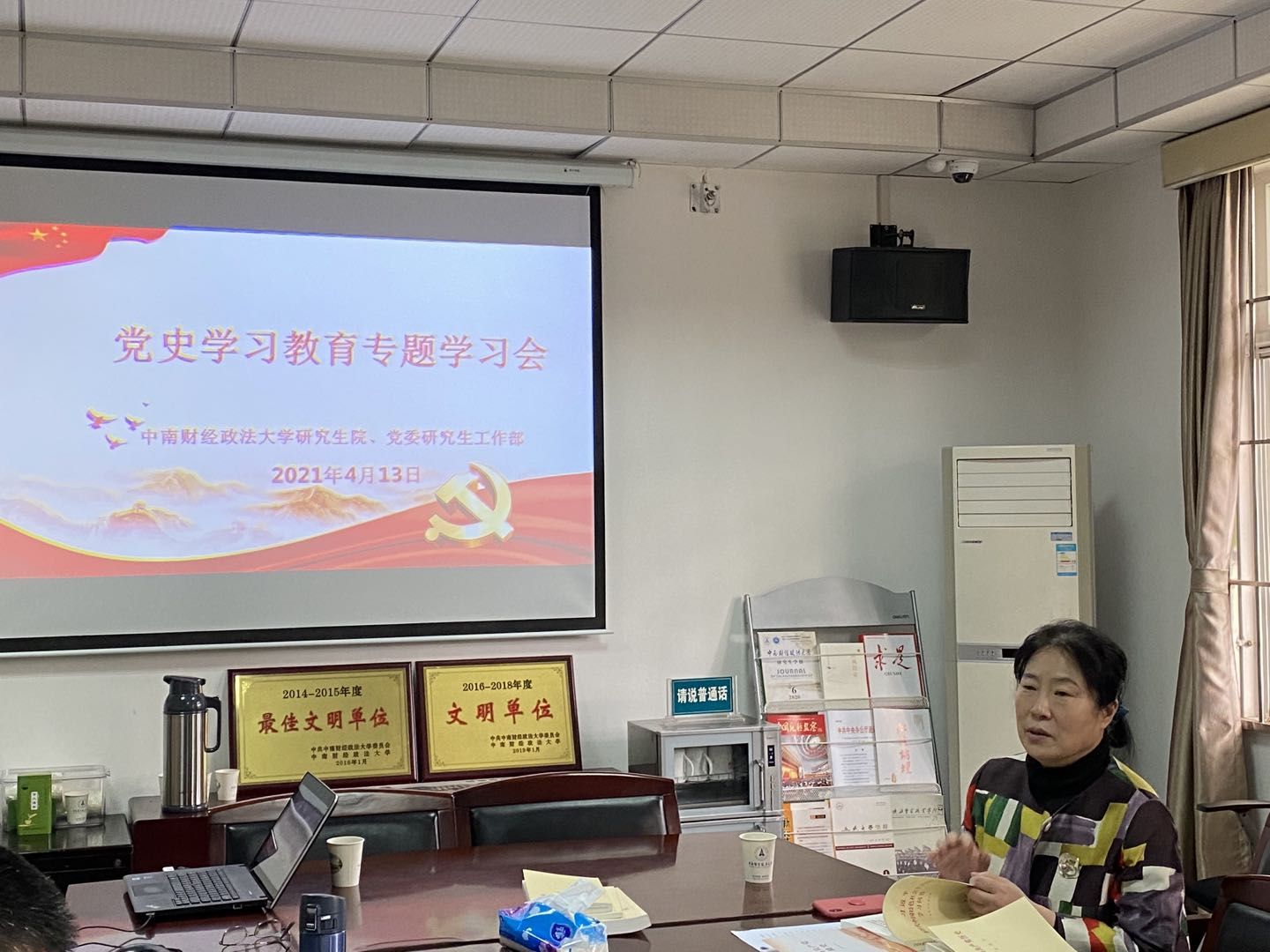 (通讯员 白玉 杨威)为深入开展党史学习教育,扎实推进课程思政育人体系建设,2021年4月13日下午,在研究生院、党委研究生工作部二楼会议室,校党委常委、副校长姚莉为部门领导班子讲授“将党史学习教育融入课程思政”主题党课,并开展“文澜大讲堂·新时代研究生思政金课”调研活动。