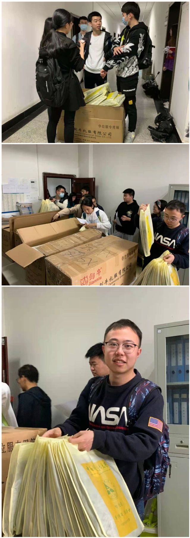 学位服发放工作由研究生院、党委研究生工作部全过程统筹。20日上午八点半,开始向各个培养单位正式发放学位服,按照文泉楼-文治楼-文波楼-文沛楼-文永楼-文澴楼-文济楼的路线依次在各培养单位间进行配送。