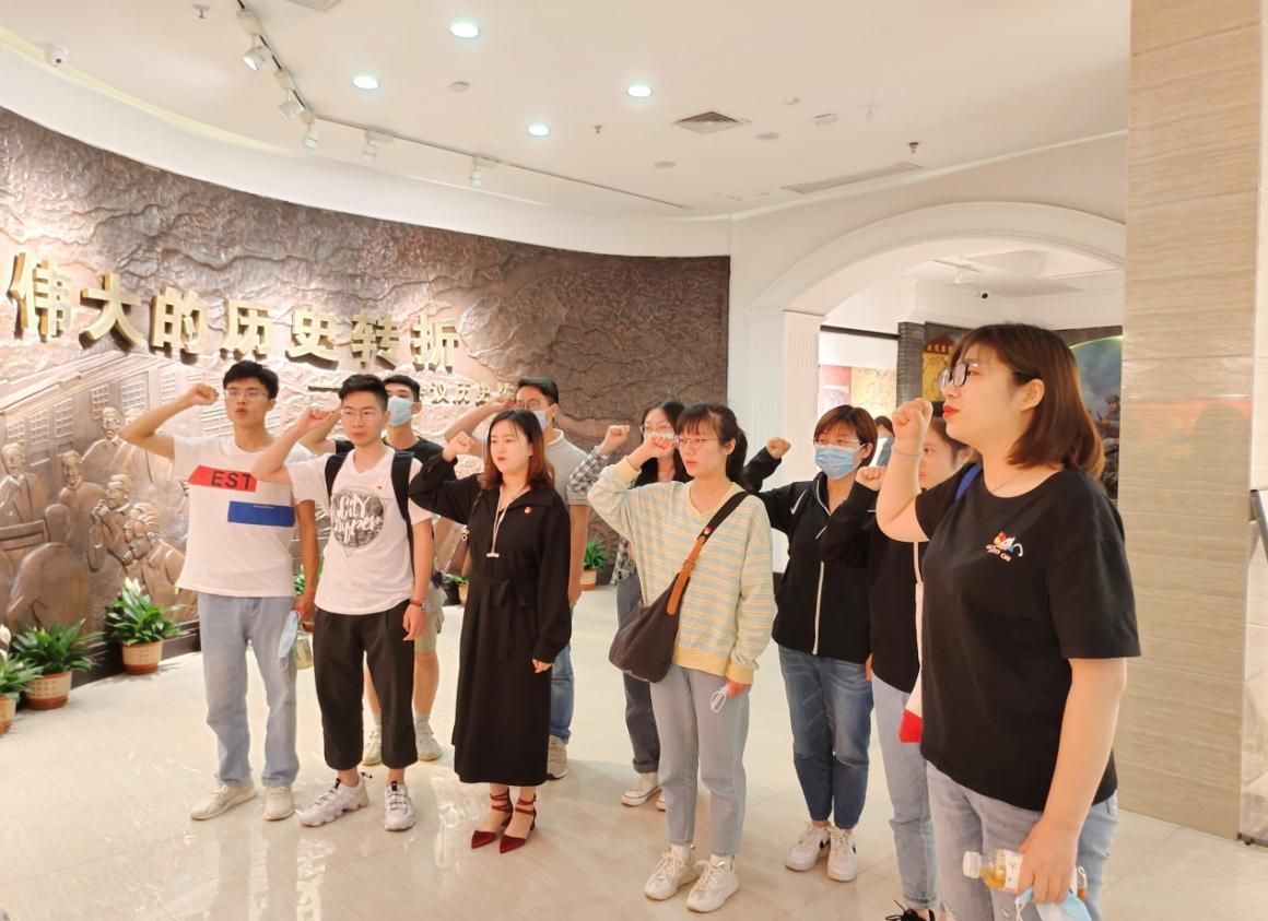活动伊始,在八七会议会址纪念馆鲜红的党旗前,全体党员同志整齐列队,高举右拳,在支部书记石韫辉同志的带领下重温入党誓词,铿锵有力的誓言在大厅里回荡,表达了对党和人民的无限忠诚,鼓舞着党员们的初心,坚定了党员们学党史、知党情、跟党走的信念。