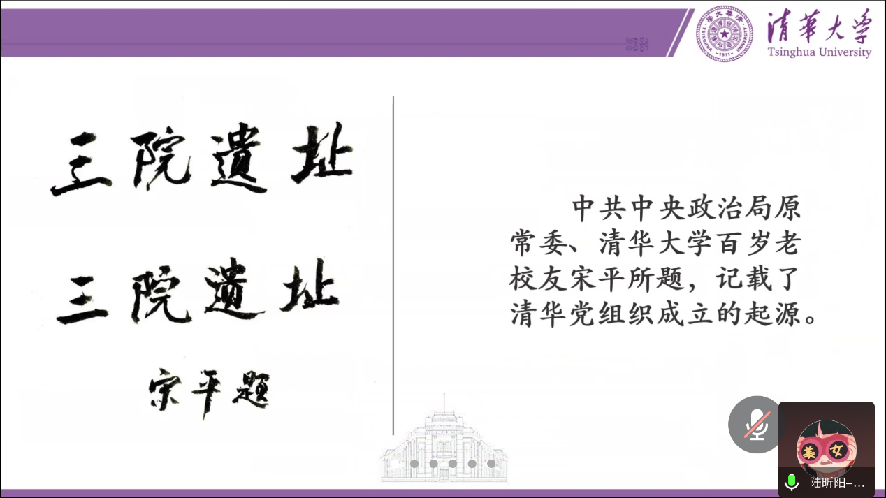 清华大学土木水利学院水硕20党支部组织委员陆昕阳带来了题为《党在清华园》的微党课。清华大学诞生于国家和民族危难之际,成长于国家和民族奋进之中,发展于国家和民族振兴之时。他介绍了清华的第一个中共支部诞生地三院遗址、第一任党支部王达成和第一次党代会,讲述了清华留美生中最早的共产党员施滉的革命事迹与知名建筑学家吴良镛院士的初心和使命。