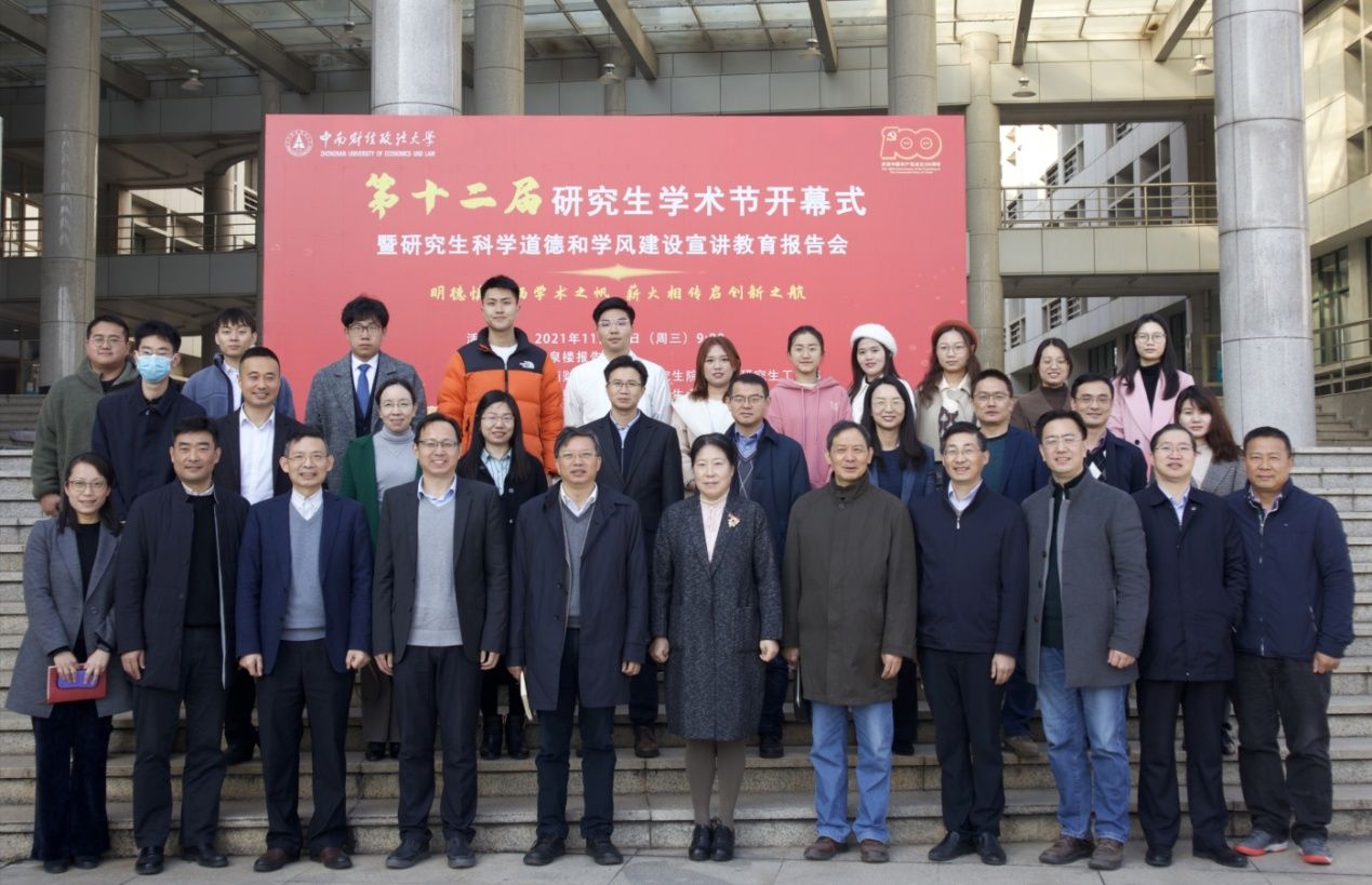 知识产权学院2019级博士研究生李安同学和华中科技大学研究生会主席团成员漆子文同学分别代表校内、校外研究生发言。李安分享了自己的科研心得,认为研究生需要静心和专心、虚心和诚心、信心与恒心才能做好研究。作为华中地区兄弟院校代表,漆子文赞扬我校研究生学术节在促进校内外师生学术交流、高校间联动合作,引领广大研究生砥志研思等方面的重要作用,并号召广大研究生以诚求学,严谨治学,以广阔的胸襟弘扬学术道德。
