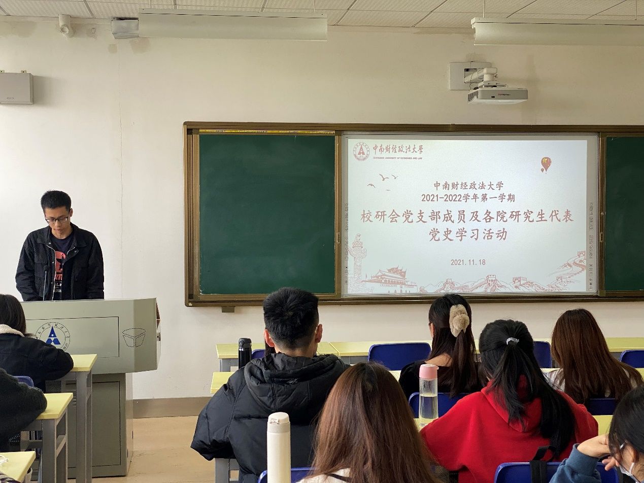 (通讯员 付慧娟 黄丽琼 桂薇 宋懿宸 肖诗弋 韦晨依)为深入学习领会习近平总书记在庆祝中国共产党成立100周年大会上的重要讲话精神,推进党史学习教育走深走实,充分发挥党史以史鉴今、资政育人的重要作用,我校于2021年11月18日下午在文澴楼517教室开展了研究生党支部党史学习教育宣讲接力第六讲。本次宣讲由法学院2020级民商法党支部、刑事司法学院硕士生2020级刑法学党支部、外国语学院2020级研究生党支部、新闻与文化传播学院2020级研究生党支部成员主讲,财政税务学院研究生党支部成员张涛主持,校研究生会党支部成员、各学院(中心)研究生代表参加。