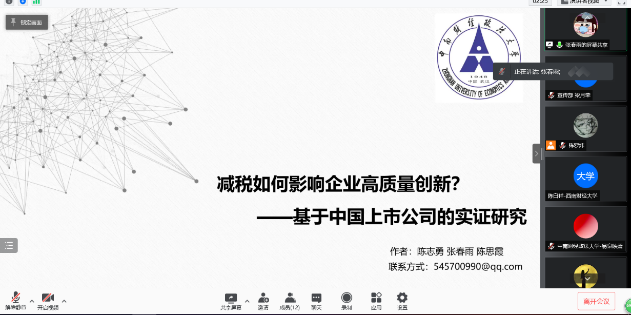 (通讯员 程明梅 许昕 梁月荣 金雨静 郑春序)2021年11月20日上午9点,米兰电竞·(中国区)第十二届研究生学术节之第十届全国财政学/公共经济博士生学术论坛于文泉楼北403成功举办,旨在为财政学/公共经济学科搭建学术交流平台,促进学科发展与创新。本次会议采取线上线下相结合的模式,并利用网络视频进行现场直播。来自清华大学、中国人民大学、武汉大学、华中科技大学、上海财经大学、中央财经大学、米兰电竞·(中国区)等高校的优秀博士生受邀参加线上会议。会议开幕式由财政税务学院副院长薛钢教授主持。