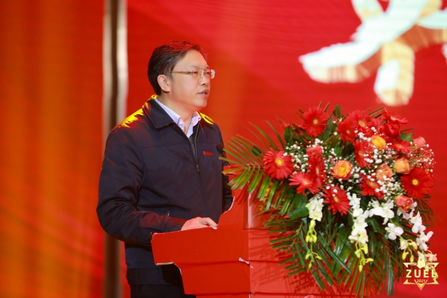 栾永玉书记致开幕词。2021年是中国共产党成立100周年,中国人民正满怀着喜悦和希望朝着加快实现社会主义现代化的宏伟目标不断前进,同时2021年是不平凡的一年,也是我校“十四五”开局好、起步好的一年。栾书记深情回顾了过去一年里,我校在党的建设、人才培养、科学研究、学科建设、助力乡村振兴等方面取得的丰硕成果,对团结奋进、锐意进取为中南大争得荣光的师生表达敬意,对长期以来奋战在教育教学一线的全体教职工表示感谢。栾书记指出,在中国共产党成立100周年、党的十九届六中全会胜利召开、全国人民向社会主义现代化强国建设新征程迈进的背景下,中南大学子须以责任担使命、以创新图未来、以奋斗筑底色,做奔涌的浪花,当好时代的答卷人。