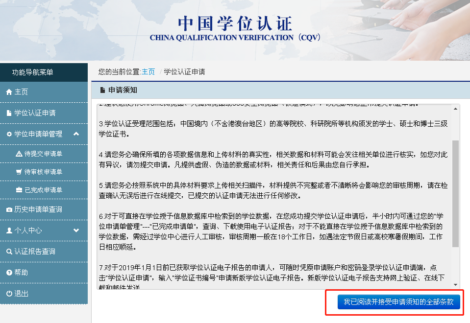 第四步 点击右下角“我已阅读并接受申请须知的全部条款”选项