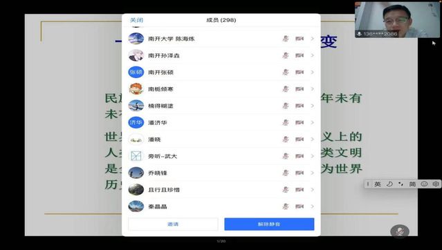 在提问交流环节,陈曙光教授针对同学们的疑问做了充分的解答,鼓励大家更充分了解国际局势及人类文明的重建,各高校与会人员积极参与交流讨论,会议现场气氛热烈、严谨高效。