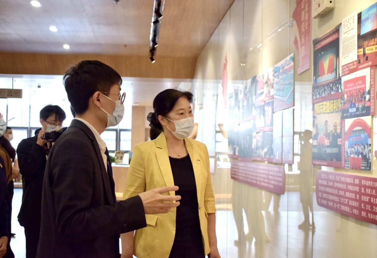 姚莉同志带领全体党员参观《我们的青春答卷》图片展、师生庆祝中国共产主义青年团成立100周年艺术作品展。