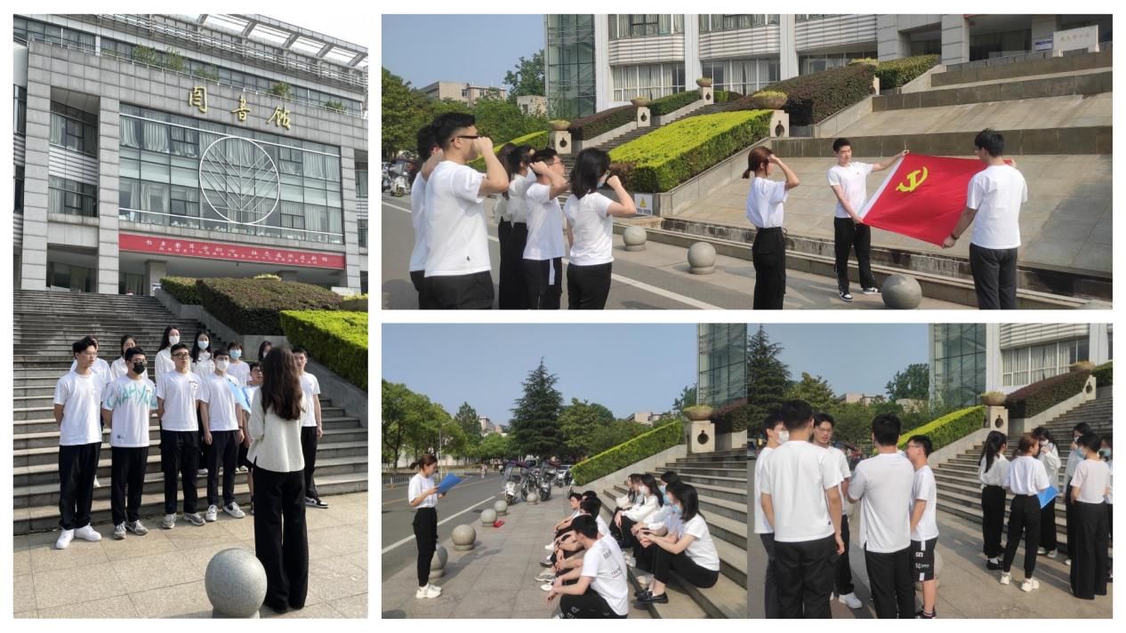 法硕21级涉外律师班党支部全体党员及入党积极分子将文波楼作为最后一站,全体党员在文波楼前重温入党誓词,学习中南大的校史校情,诵读36位毕业于中南大的诗人的作品《山湖集》。