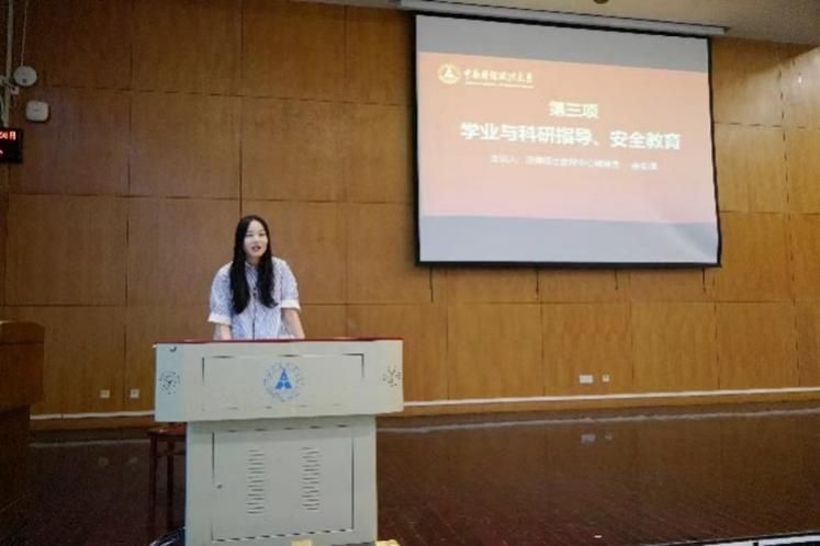 马晨娇老师就研究生奖助体系进行了介绍。她依次介绍了国家奖学金、学业奖学金、助学金、科研与实践奖励、学年评优、专项奖学金、“三助”酬金、特殊困难补助等奖助学金取得的条件和标准。